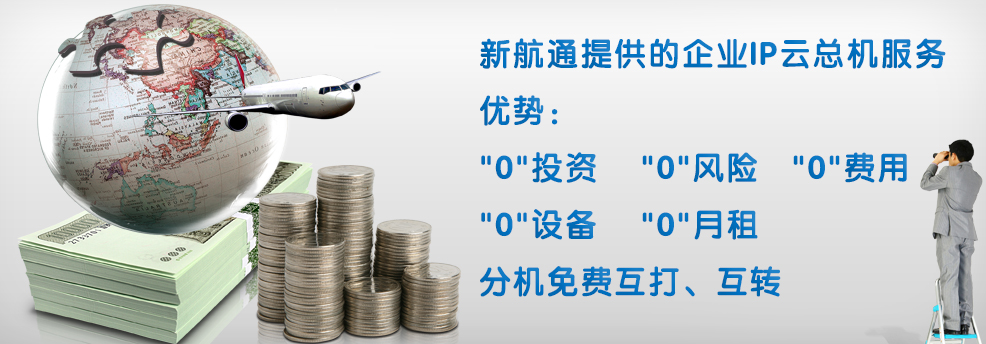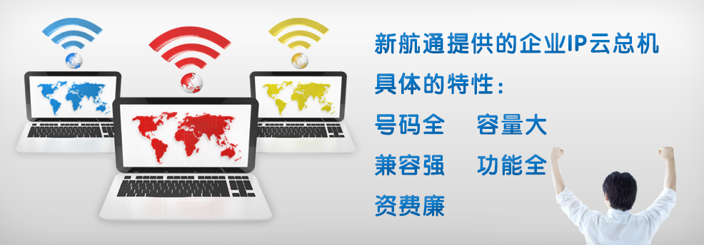 企業(yè)IP云總機是香港新航通通信有限公司提供的一套基于互聯(lián)網(wǎng),滿(mǎn)足企業(yè)統一管理需求的新型總機產(chǎn)品。系統采用國際先進(jìn)的語(yǔ)音通信技術(shù),企業(yè)無(wú)需投入任何軟件、硬件,即可擁有自己的總機,不僅輕松實(shí)現傳統電話(huà)總機的功能,更可以自行設定總機歡迎語(yǔ),智能轉接來(lái)電,并提供語(yǔ)音留言等功能,提升企業(yè)形象,提高企業(yè)與客戶(hù)溝通效率。